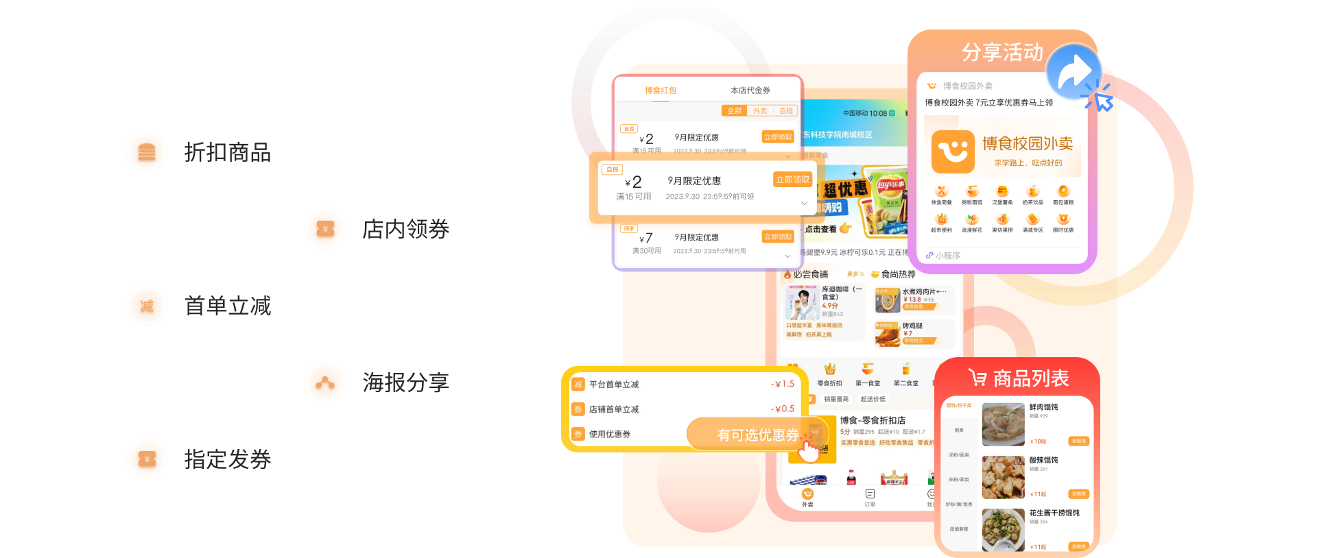 丰富的营销活动,自定义的用户体系,各种优惠券的创建,助力平台更好的运营